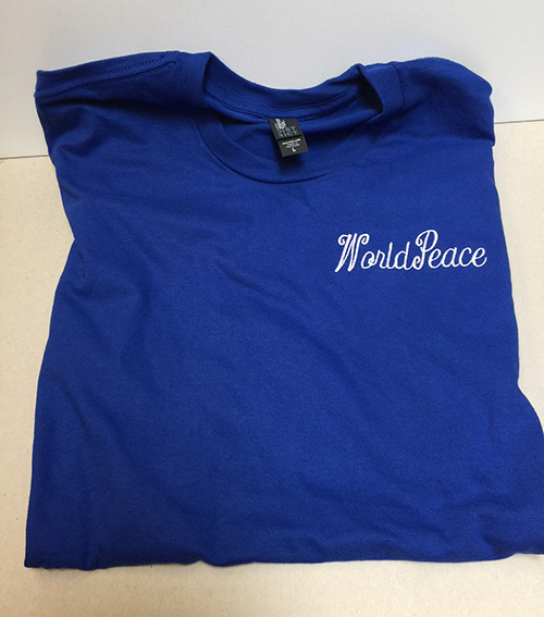 Blue Cotton Tee Shrit with WorldPeace Script Short Sleeve
